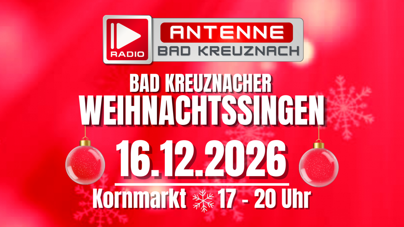 Auf dem Kornmarkt findet am 16.12.2026, erneut das beliebte Bad Kreuznacher Weihnachtssingen statt. Besucherinnen und Besucher können gemeinsam mit Chören und Musikgruppen weihnachtliche Lieder singen, die Adventszeit genießen und die festliche Atmosphäre in der Stadt erleben. Das Event bietet ein abwechslungsreiches Programm für Groß und Klein, inklusive stimmungsvoller Beleuchtung, weihnachtlicher Dekoration und Köstlichkeiten. Ein besonderes Highlight ist das gemeinsame Mitsingen, das Jung und Alt verbindet.