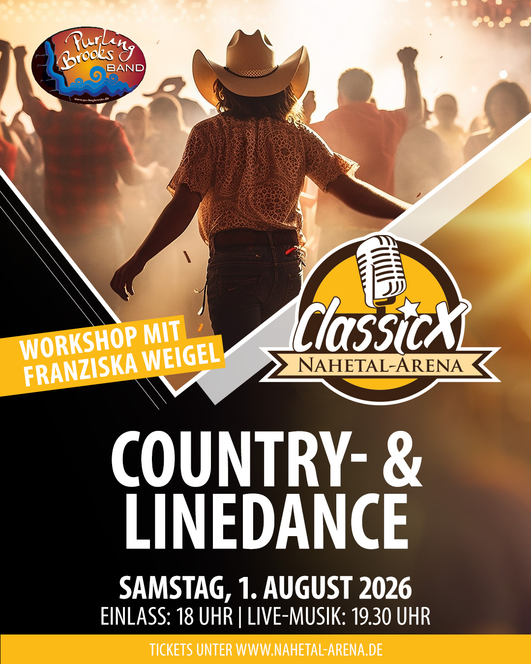 Alle, die gerne noch vollkommen „handgemachte“ Live-Musik hören und genießen möchten, kommen bei der PURLING BROOKS BAND voll auf ihre Kosten. Wer noch unerfahren ist: Vor dem Konzert findet ein Linedance Workshop statt – für Anfänger bis Fortgeschrittene mit Franziska Weigel: Langjährige Erfahrung als aktive Line Dance Tänzerin, seit 2 Jahren Ausbildung zur Kursleiterin Line Dance beim Saarländischen Turnerbund
