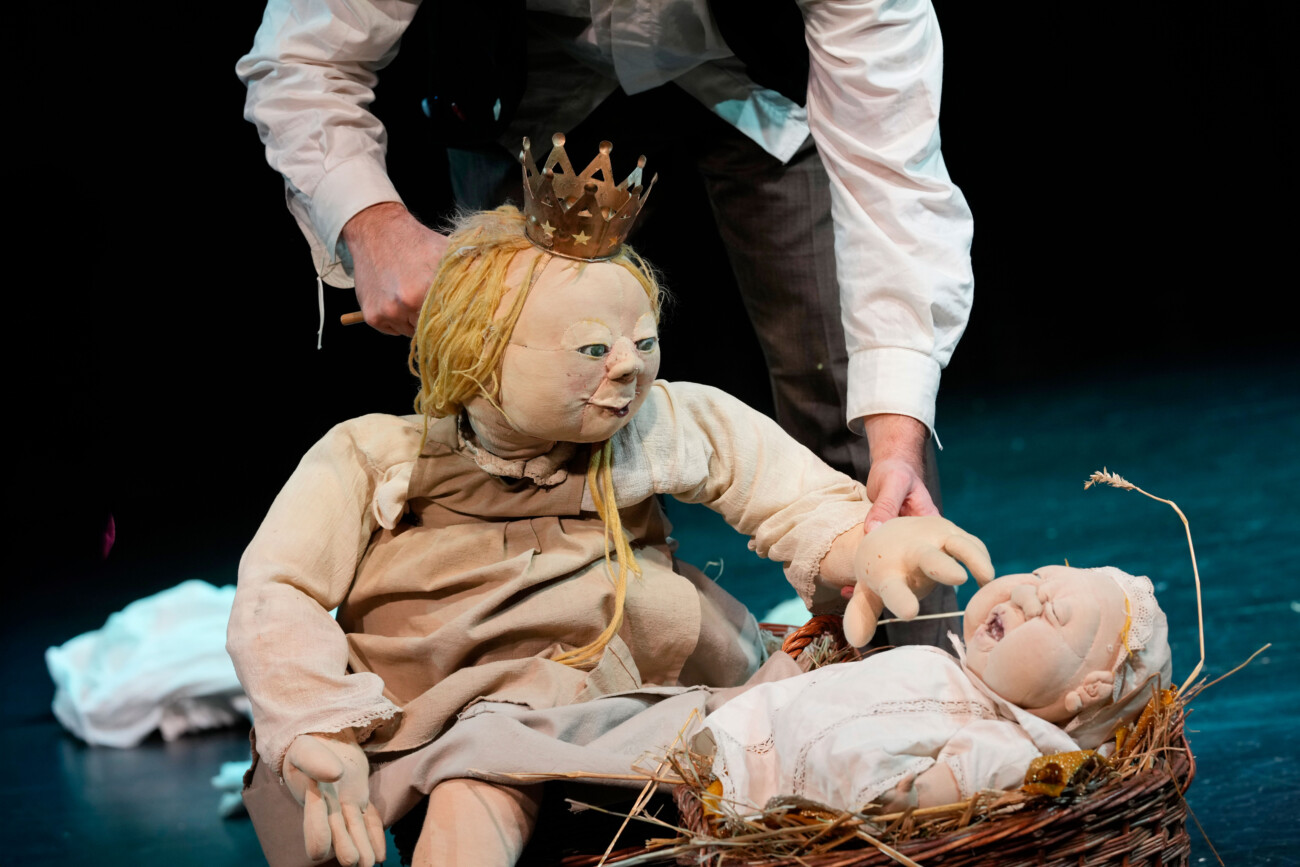 Der freut sich sehr, denn Stroh hat er viel, GOLD aber nicht. Das Grimmsche Märchen vom Rumpelstilzchen, erzählt mit lebensgroßen textilen Puppen vom Figurentheater Tröbinger aus Österreich.