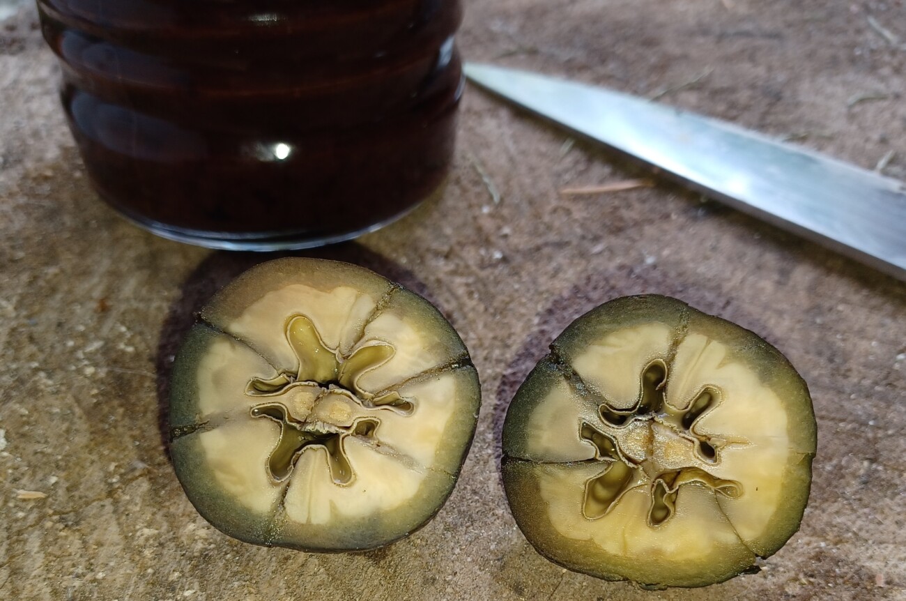 In diesem Kurs sammeln die Teilnehmer unreife, grüne Walnüsse von den Museumsbäumen. Unter Anleitung von Herrn Diener werden die ersten Verarbeitungsschritte ausgeführt. Die Nüsse werden gewässert, um Bitterstoffe zu entfernen. In diesem Prozess erhalten sie ihre schwarze Färbung. Nach ca. 3 Wochen werden die Nüsse in Sirup eingekocht, bevor sie mehrere Monate reifen.