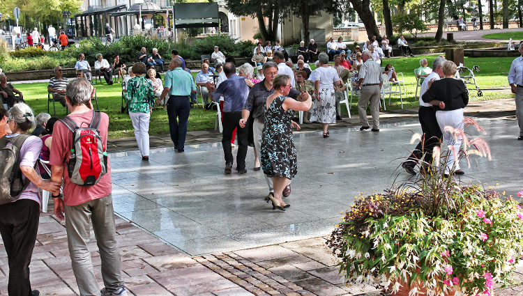 Fast jeden Sonntag von Ende April bis Anfang Oktober spielen Musiker im Auftrag der Gesundheit und Tourismus für Bad Kreuznach GmbH oder des Parkhotels Kurhaus im Kurpark Bad Kreuznach um 15.30 Uhr bekannte Hits, die zum Tanz unter dem Platanendach einladen.